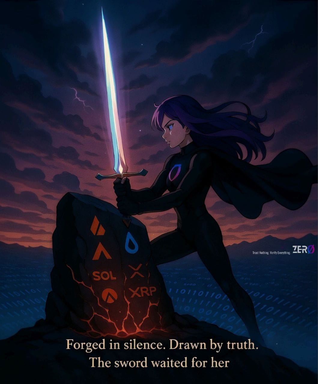 I believe that in the Bible, the sword represents truth. I love that symbolism and also loved thefilm ‘The Sword in the Stone’ as a kid! Zero draws her sword from a stone whose ore bleeds redfrom the iron within it… That red ore spills out through the corrupted blockchains and she galvanises it. Forged is an instrument of truth, sharp enough to cut through the deception in the world. (And her heart is true enough to wield it ❤️🔥)